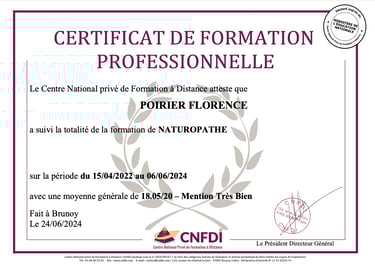 CERTIFICAT DE FORMATION EN NATUROPATHIE